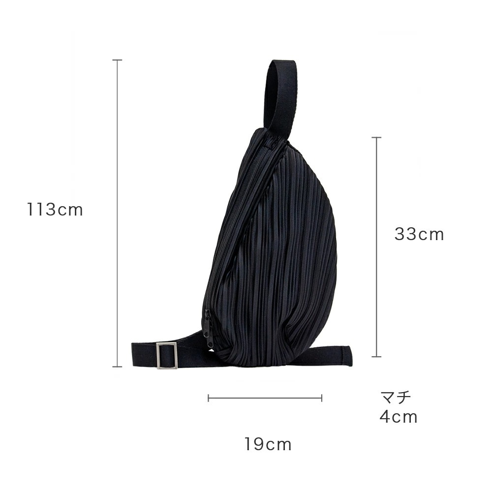 クロスバッグ、ヒップサックなど、様々な演出が可能なスタイルに合わせやすい、機能的なスリングバッグです。 内ポケットを備え、小物をすっきりと整理して収納できます。軽くて持ち運びやすく、普段使いだけでなく、旅行やアウトドアにも最適です。裏地があって中身がたるみません。内側にポケットがあり収納に便利です。 |